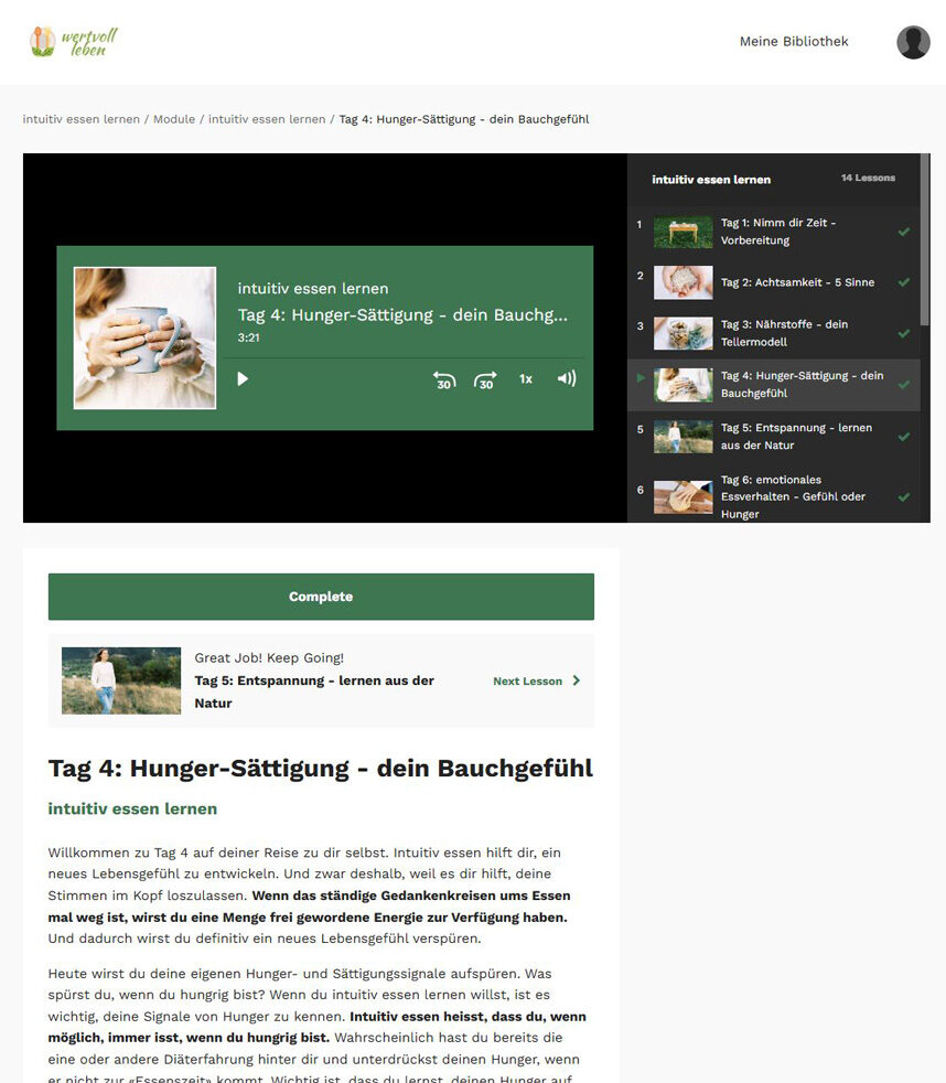 Brandneuer Onlinekurs: Buche jetzt den 14-tägigen Kurs "intuitiv essen lernen" – lege sofort online los!
